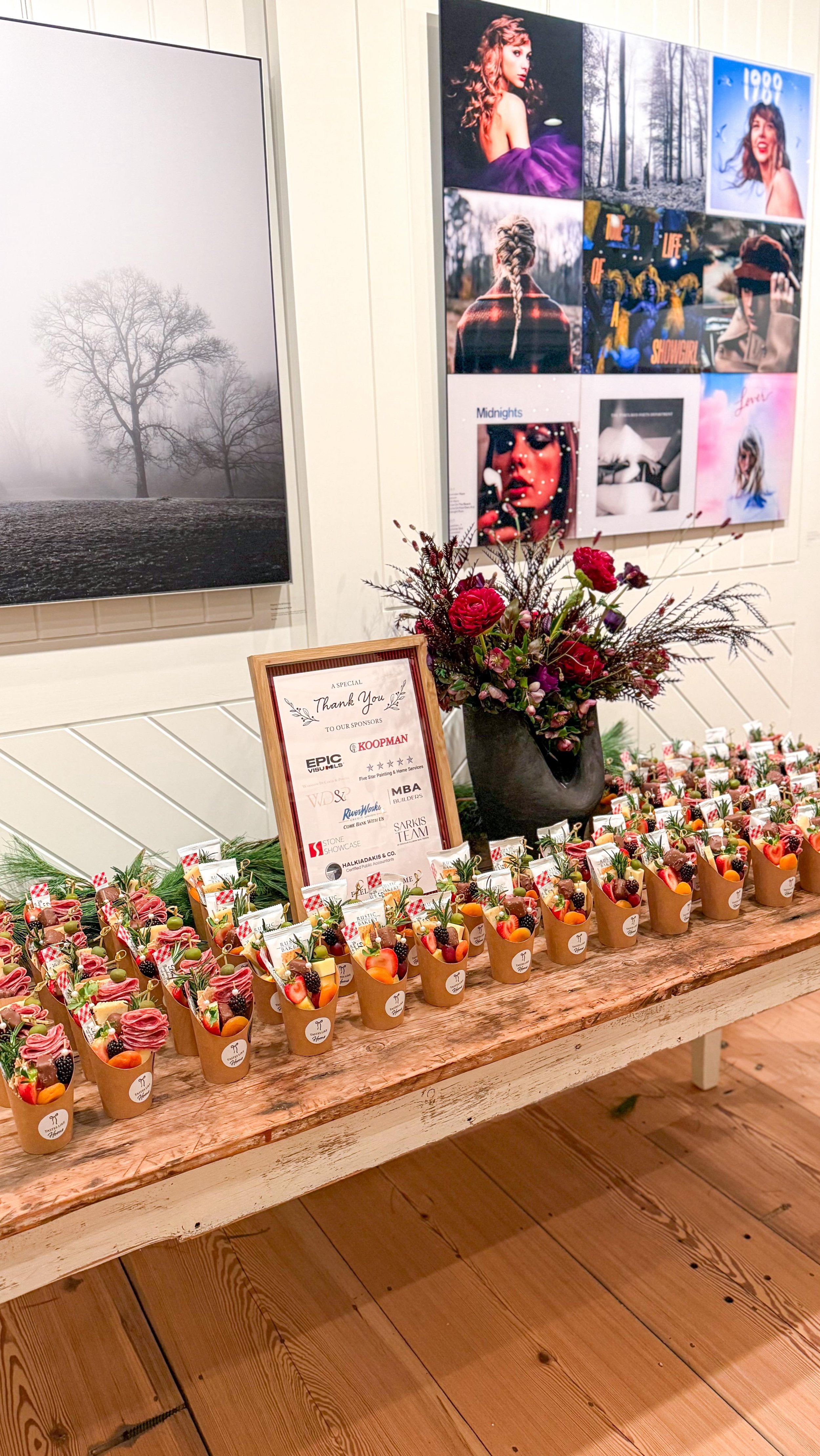 Additionally, you can rent our cone wall, which makes a lasting impression at any event—and yes, you can even add your own branding with a custom logo or personalized stickers on each cone for that extra-special detail. We also offer convenient charcuterie cups and boxes for a stylish on-the-go experience, as well as custom boards and grazing tables tailored to your event’s theme!